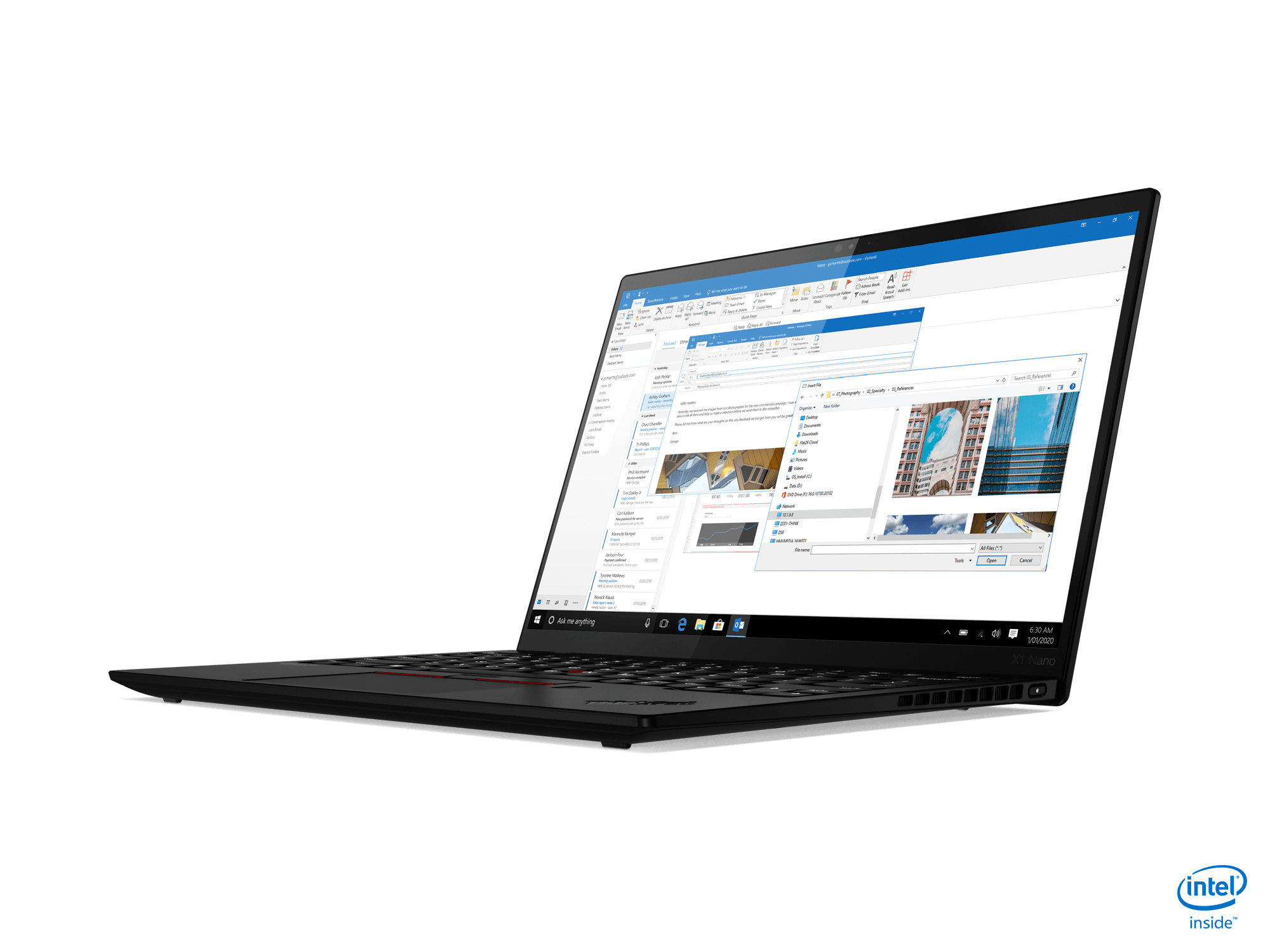 On the ThinkPad X1 Nano, stunning visuals are delivered through a narrow bezel 13-inch 2K display with a 16:10 aspect ratio, and four speakers and four 360-degree microphones enhance the audio-visual capabilities. For a truly immersive user experience, the X1 Nano supports Dolby Vision and Dolby Atmos®. State of the art connectivity is provided by Wi-Fi 6 and optional 5G will deliver higher bandwidth capability and drive new levels of always on always connected efficiency and collaboration in a new hybrid working world.