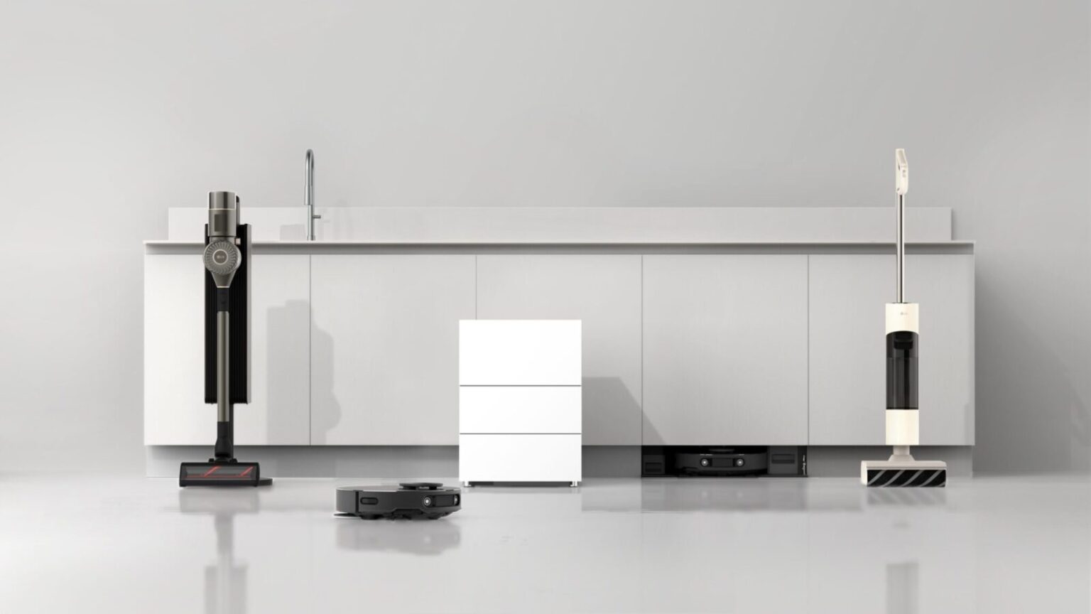 A second model is less visible but built into the home itself. Designed for European kitchens, this robot vacuum station can be installed beneath a sink and opens automatically when needed. It manages dust disposal through an air circulation system to cut down on noise, while also automating water supply, drainage, and mop cleaning. A turbidity sensor checks mop cleanliness and initiates a wash cycle when required.