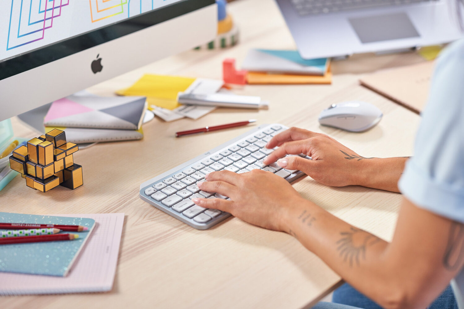 MX Keys Mini appeals to every personality with three colors – rose, pale gray and graphite – and pairs well with Master Series mice, allowing you to build a complete MX setup and create like never before.