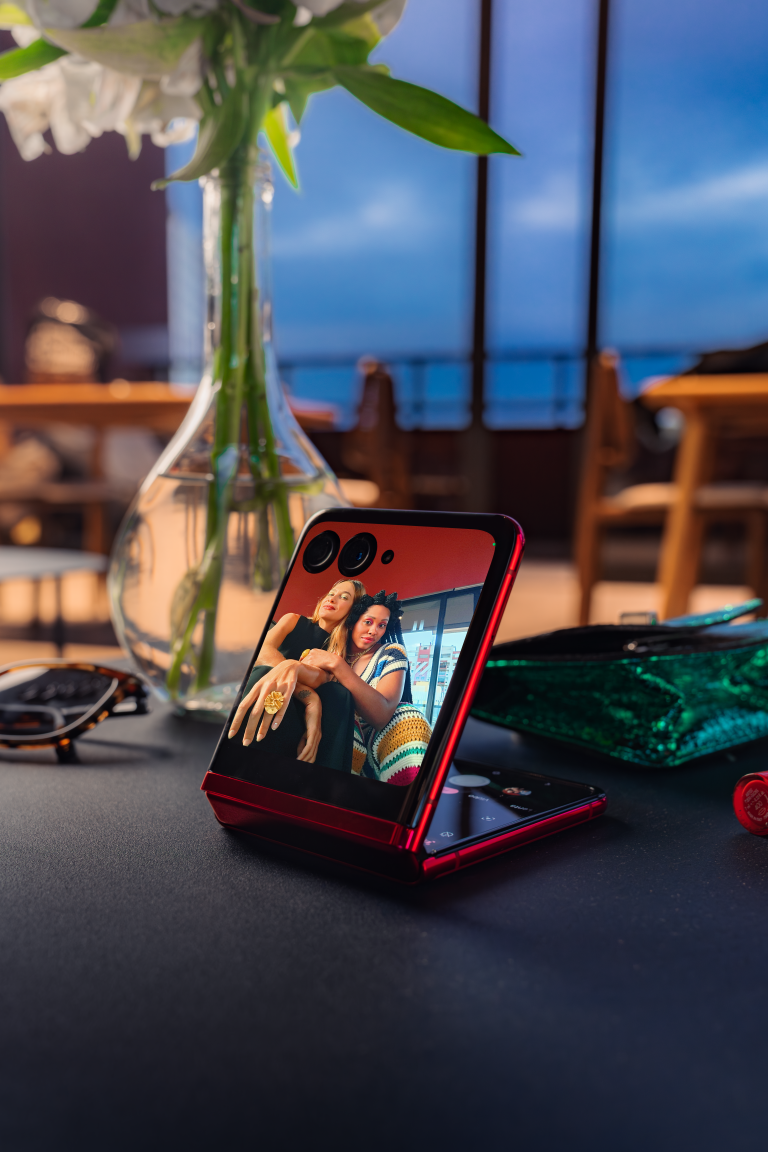 With the new razr, users are able to stand the device on its own at multiple angles thanks to Flex View technology, which offers new ways to interact, capture, and create. Users can angle the device to easily view recipes while cooking, follow an exercise coach online, video chat with friends and more. Or, use the device as a tripod and capture stunning images and videos with hands-free recording, benefitting from the high-quality cameras, AI face tracking, and previews on the large external display.