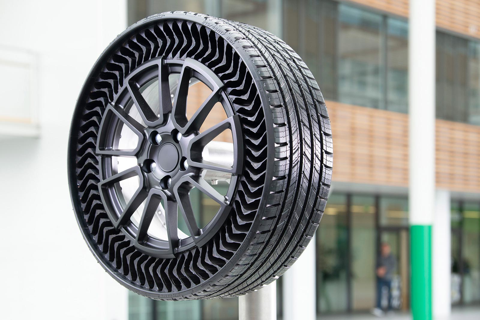 Michelin and General Motors presented a new generation of airless wheel technology for passenger vehicles — the MICHELIN Uptis Prototype (or “Unique Puncture-proof Tire System”) — at the Movin’On Summit for sustainable mobility.