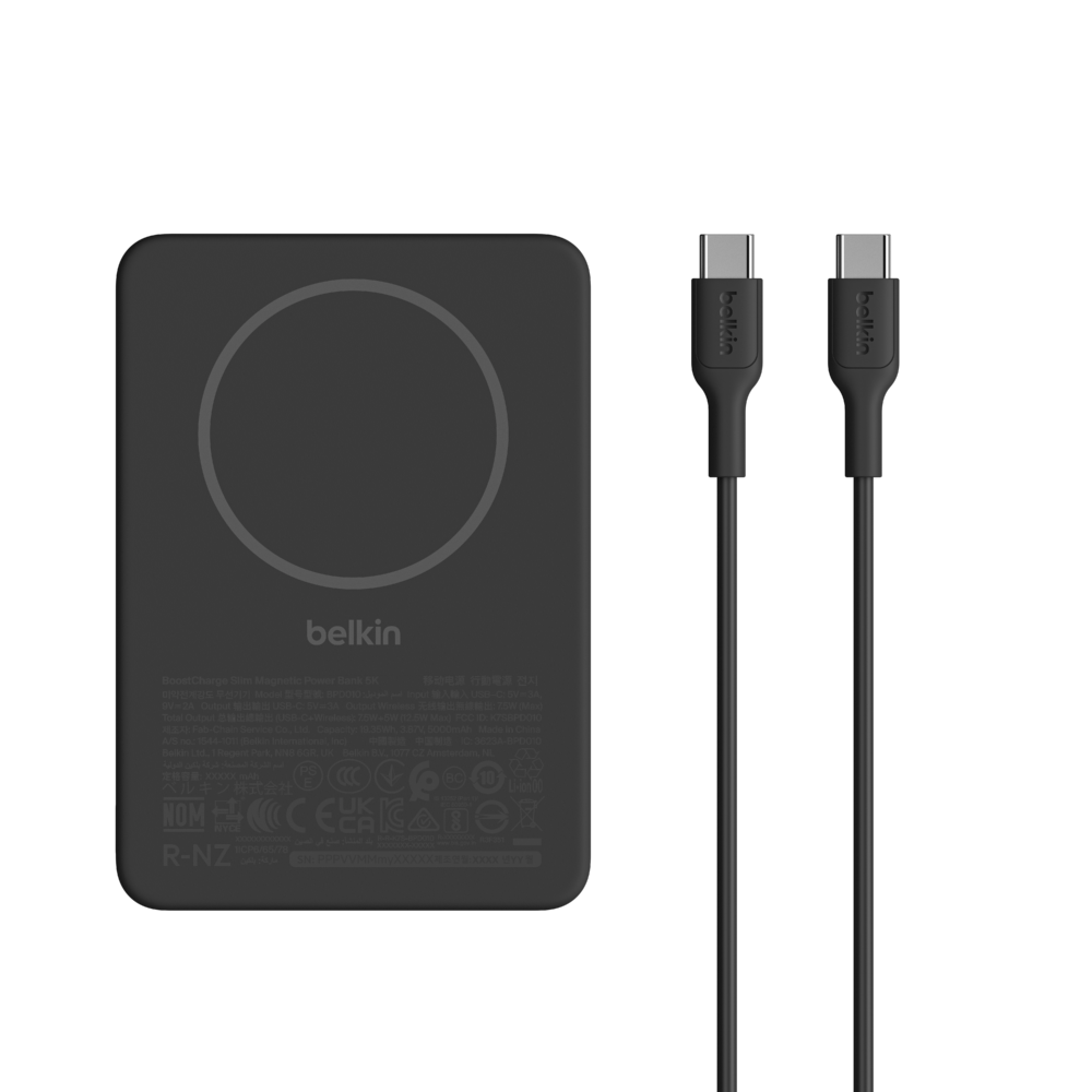Rounding out the lineup is the BoostCharge Slim Magnetic Power Bank 5K, a compact wireless charging option designed to attach directly to compatible smartphones. With a 5,000 mAh capacity and an additional USB-C port, it supports charging two devices simultaneously. Its construction uses a high percentage of post-consumer recycled materials, reflecting a gradual shift across the accessories market toward more sustainable manufacturing practices.