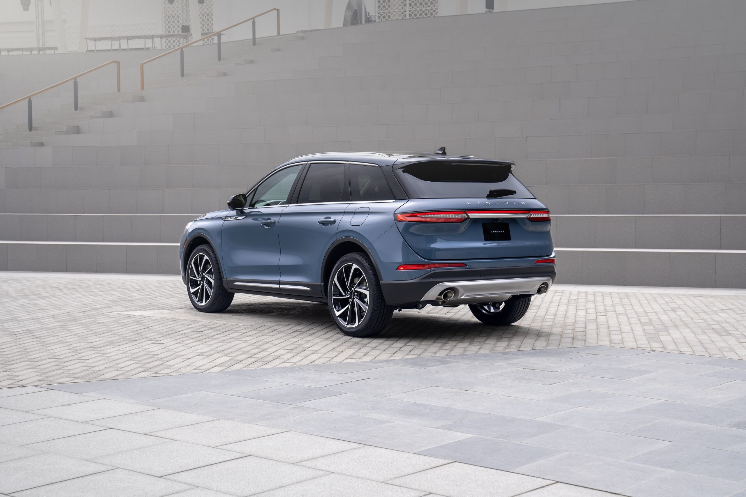 It starts with the Corsair’s exterior, which sees a lengthened grille with a new waterfall pattern, updated front fascia, and a fresh wheel design, with narrow spokes giving way to a broader, more dynamic aesthetic. The available Jet Appearance Package adds a special black monochromatic touch to the wheels, with the pillar black shade coloring elements including the grille, roof rack, and fender badge. The Corsair is now available in two new exterior colors – Crystal Red and, in a first for Lincoln, Whisper Blue.