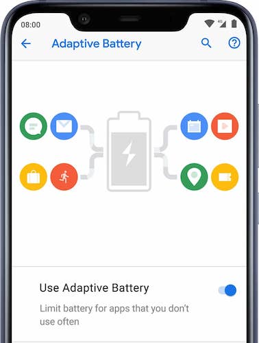 A sub-feature of android one is the adaptive battery. The feature uses AI to learn how you use your phone. It then uses that information to improve battery life.