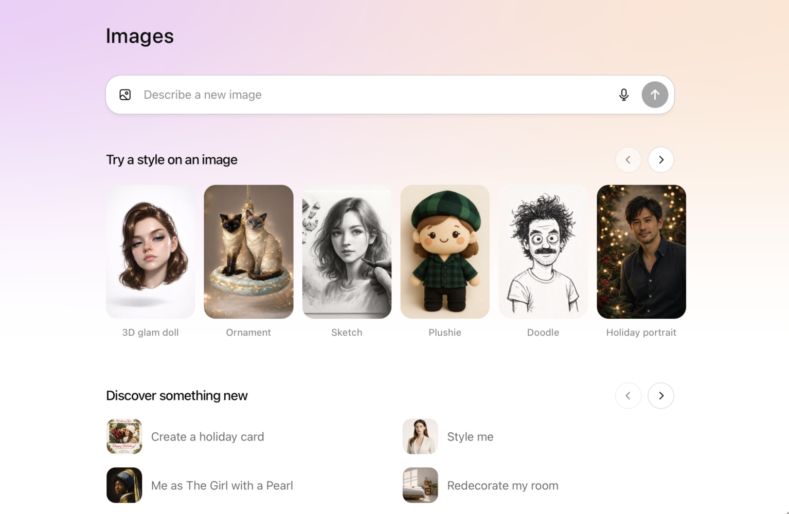 Alongside the model upgrade, OpenAI has redesigned how users access image generation within ChatGPT. Images now have a dedicated entry point in the sidebar, positioned as a workspace rather than a simple prompt-and-output interface. The new layout includes expanded viewing and editing screens, as well as curated prompts and preset filters meant to support ideation without dictating outcomes.