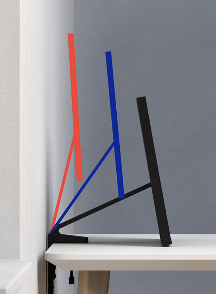 The new screen is minimal and can sit at the edges of the table, and also designed to sit upwards on a wall behind it, and has a flexible arm to position the monitor in multiple angles.