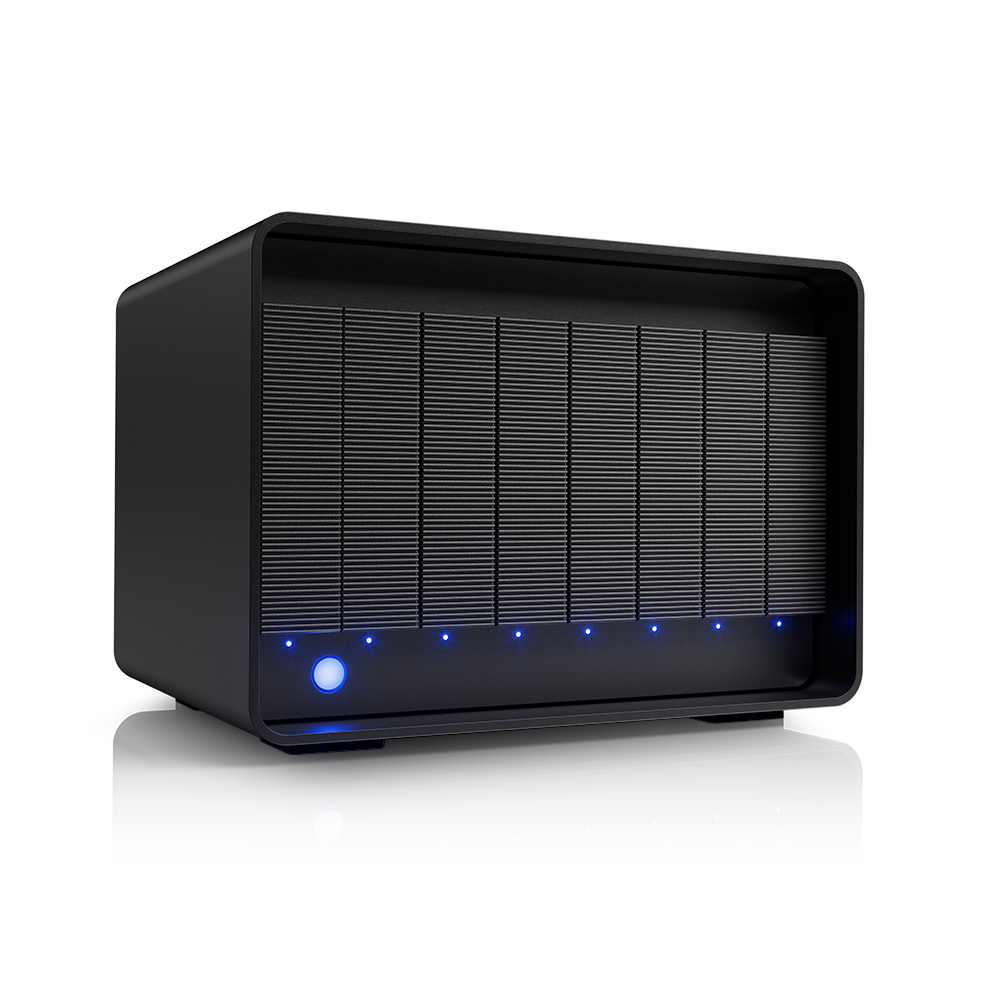 For professional creatives, the LaCie 8big Pro5 offers a more robust multi-bay Thunderbolt 5 RAID solution. Configurations range from 32TB to 256TB, supporting various RAID levels for either speed or data protection. Claimed transfer rates reach up to 2800MB/s in RAID 0, with the ability to deliver up to 140W of power to connected laptops. A five-year warranty and included recovery service reflect the higher expectations in production environments handling multi-stream video or large image libraries. It is positioned at a premium, starting from AED 22,999.
