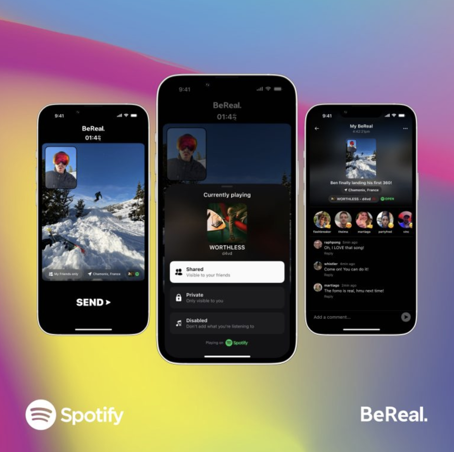 The integration is just another way of bringing Spotify to more people in more ways – helping fans, artists, and communities find new ways to connect through audio around the world. BeReal and Spotify users on Android and iOS can access this experience as it rolls out.