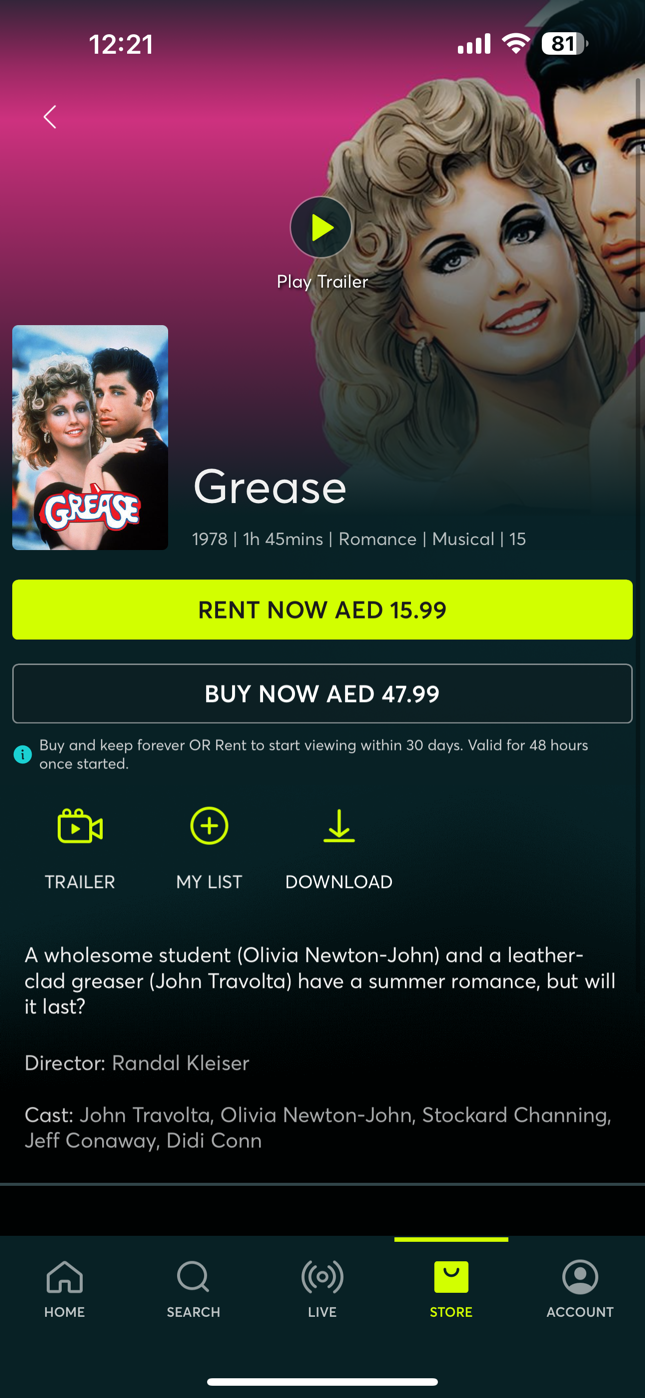 The new store allows users to either rent titles starting from AED 15.99, or download and own select titles starting from AED 47.99