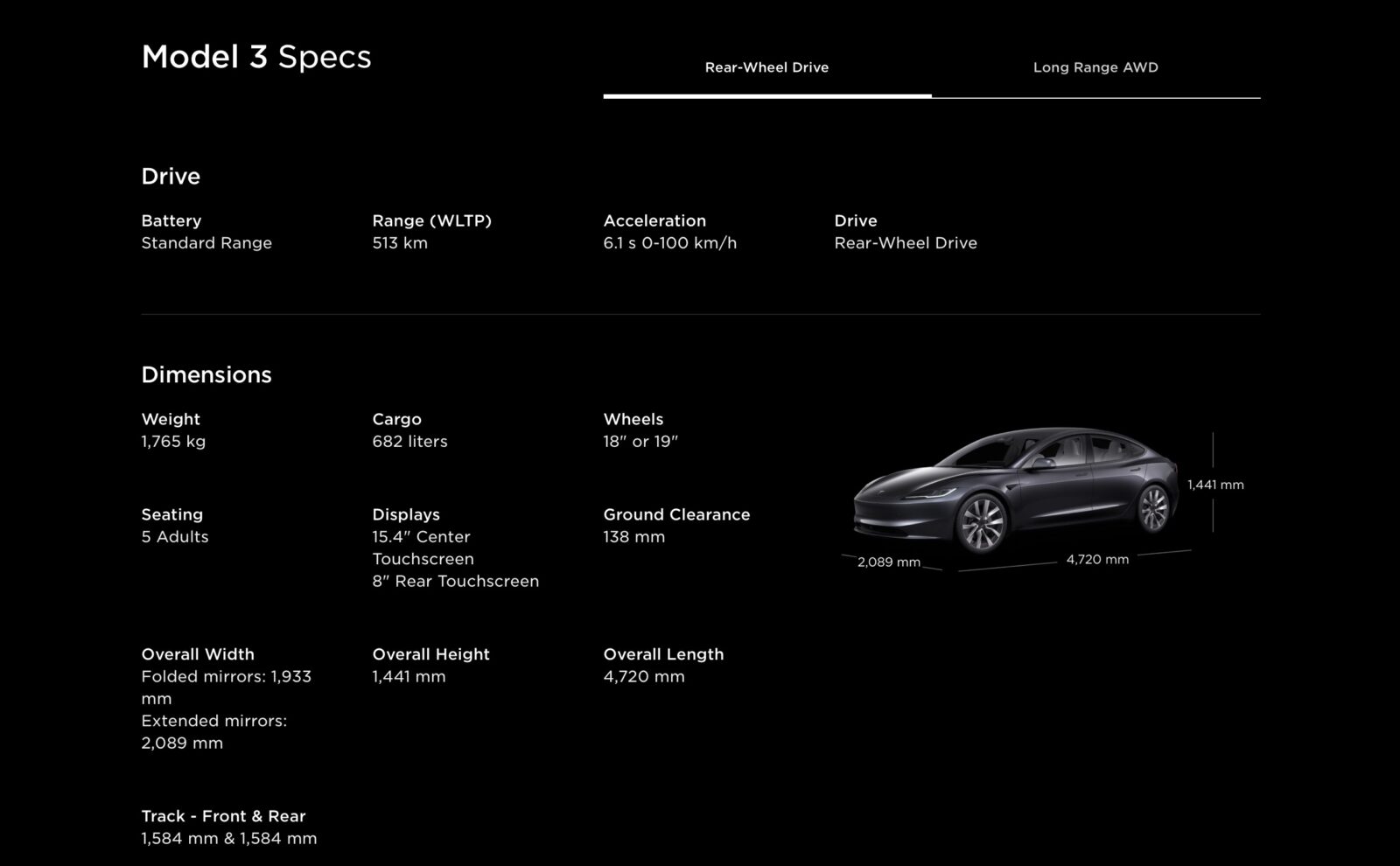 As per the website details, the RWD version has an estimated WLTP range of 513 km with the Long Range version has an estimated WLTP range of 629 km.
