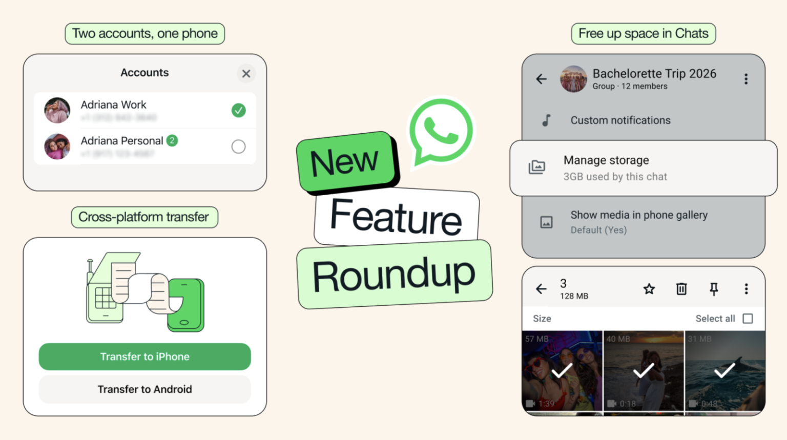 WhatsApp is introducing a set of updates aimed at improving everyday usability, with changes that focus on account management, chat transfers, storage control, and a growing set of AI-assisted tools. The rollout brings features that have been gradually appearing across messaging platforms, now consolidated into a broader update for both iOS and Android users.