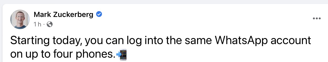WhatsApp is rolling out login on multiple smartphones at the same time. Mark Zuckerberg announced the rollout on Facebook and Instagram.