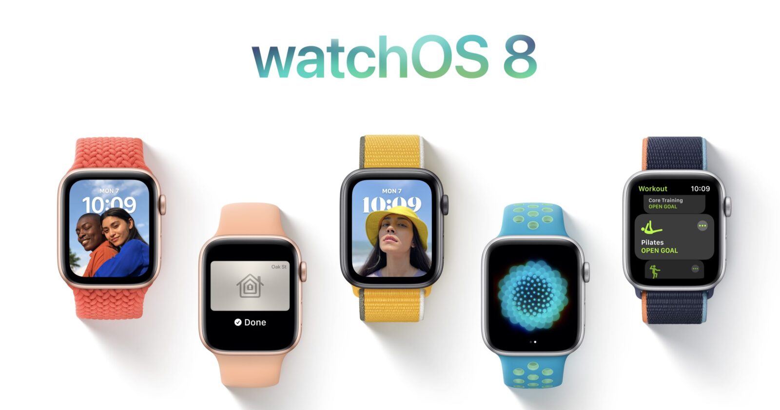 watchOS® 8 comes with impactful new features that make the world’s most advanced wearable operating system even more essential for users to stay healthy, active, and connected. Updates to the Wallet and Home apps extend Apple Watch® as an increasingly useful tool for convenient access across the car and places users live, work, and visit. A reimagined Breathe app and new Tai Chi and Pilates workout types help users lead a fit and healthy life and support mental well-being, while a new Portraits watch face and enhancements to Messages and the Photos app make staying connected to loved ones even easier.