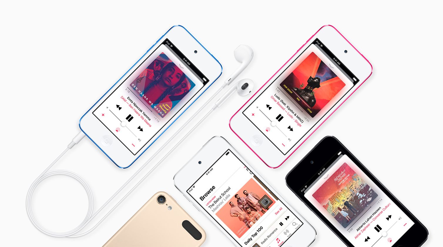 The new iPod touch starts at AED 849 for the 32GB model, AED 1,269 for the 128GB model and AED 1,689 for the 256GB model from apple.com, in the Apple Store app and Apple Stores, and is also available through Apple Authorized Resellers and select carriers (prices may vary). iPod touch is available in six finishes; space gray, white, gold, blue, pink and (PRODUCT)RED.
