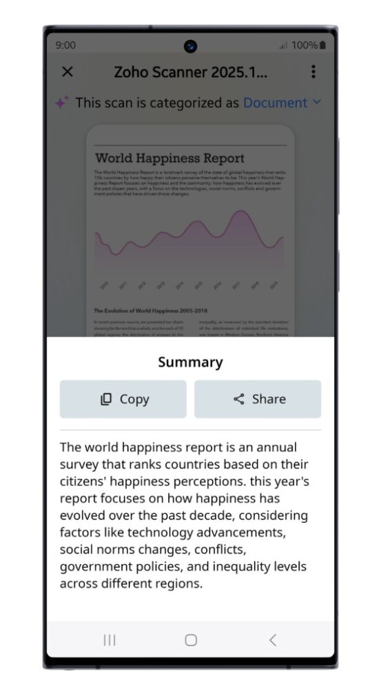 Beyond traditional scanning functions, Zoho Scanner now employs AI to handle tasks such as automatic document edge detection, image enhancement, and background noise reduction. It also integrates high-accuracy optical character recognition (OCR) and built-in translation for multiple languages, which can be useful for cross-border businesses or multicultural teams operating in the UAE.
