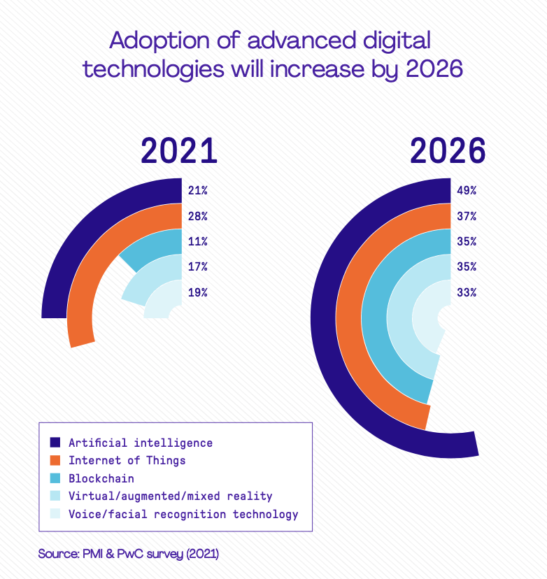 PMI’s Pulse of the Profession® in-depth report, Next Practices: Maximizing the Benefits of Disruptive Technologies on Projects, determined that a vast majority of innovators, which are defined as high- performing organizations that have a mature digital transformation strategy, indicate the adoption of disruptive technologies has supported significant improvement in meeting or exceeding business objectives.