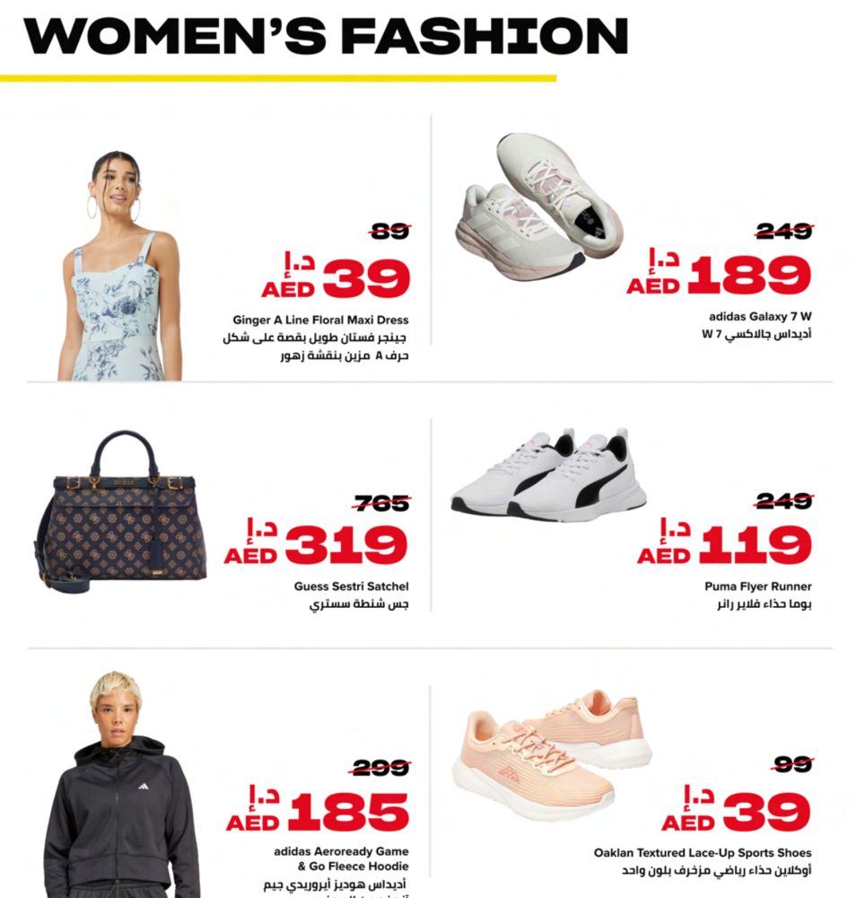 - Athleisure: Leggings, hoodies, sneakers, etc. from brands like Adidas and Puma.