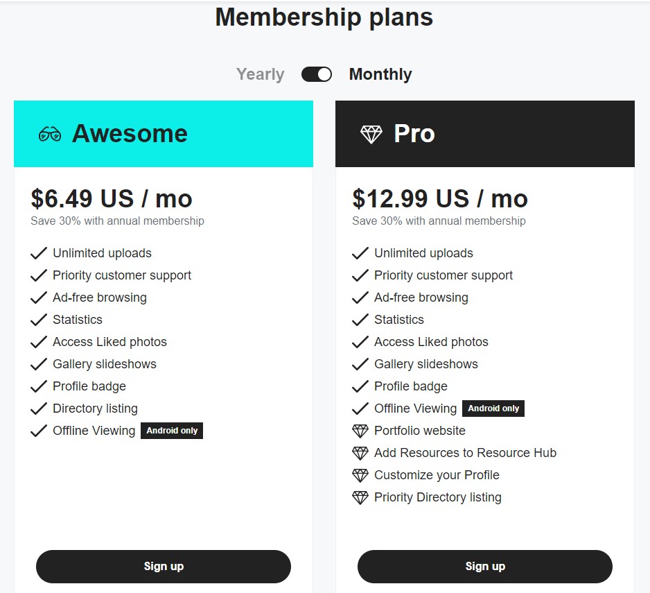 This too is quite similar to SumgMug with a lot of focus on building a portfolio and showcasing your work, an active community that interacts with your work and more. Apart from that, it has a fair usage policy of 1000 photos per week. So it would take me over 2 years to backup all my photos; quite unfair.