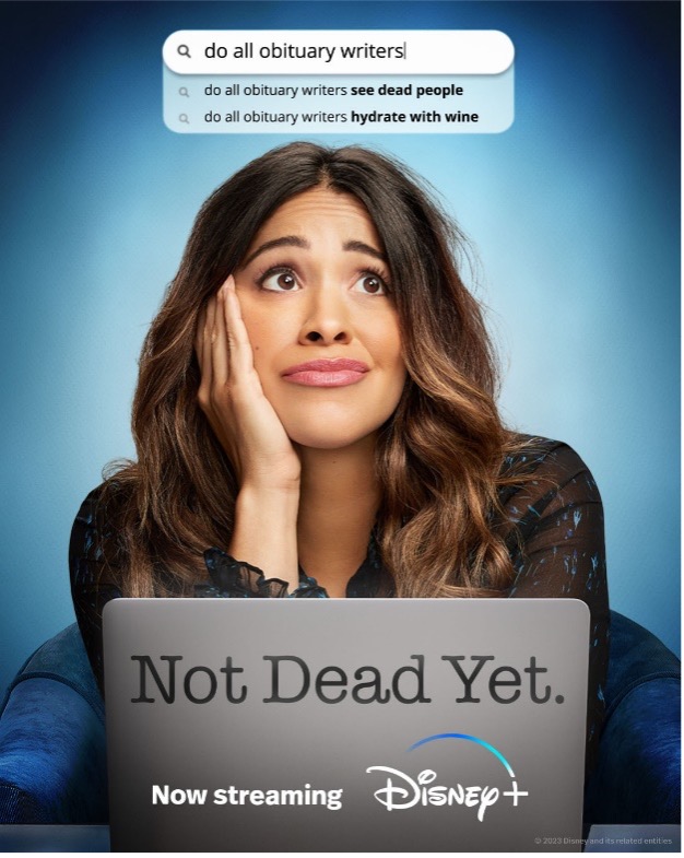 “Not Dead Yet” follows Nell Serrano (Gina Rodriguez), a broke and newly single, self-described disaster, working to restart the life and career she left behind 10 years ago. When she lands the only job she can find — writing obituaries — Nell starts getting life advice from an unlikely source.