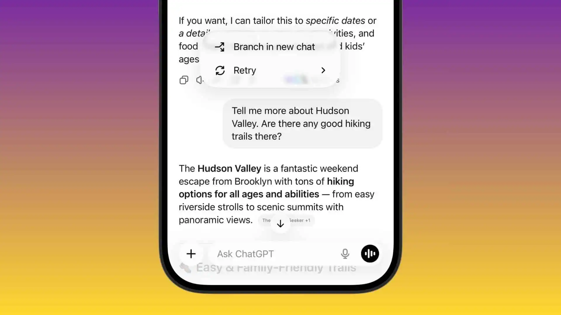 ChatGPT for iOS adds branched chats to manage conversations more cleanly